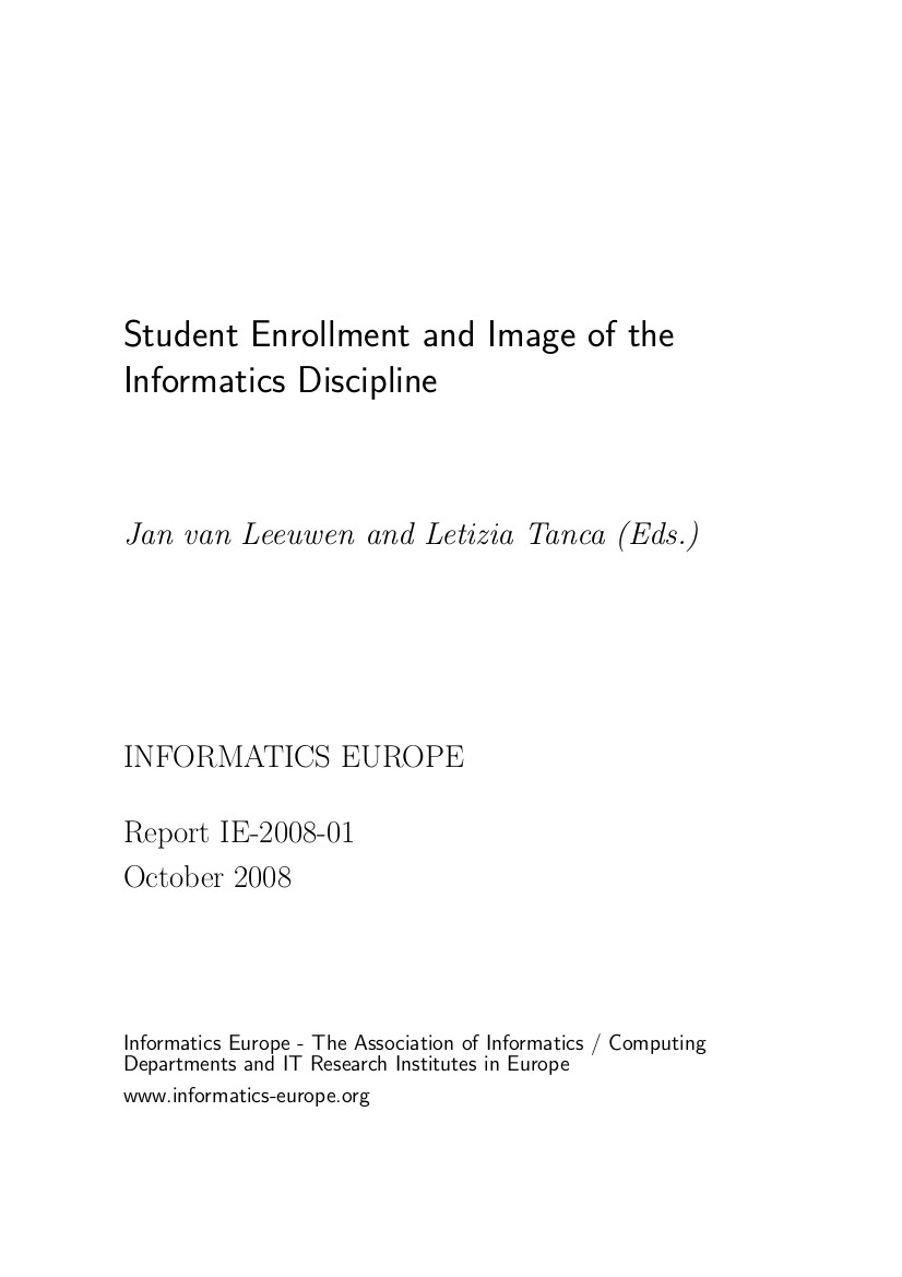 Report describing the results of the working group on "Student Enrollment and Image of the Discipline" created to collect insights on these issues and to come up with a document that advises the Informatics community on the state of the problem and on possible measures that could be taken to resolve it.