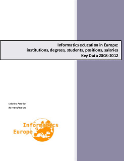 Third edition of the report series on Informatics higher education in Europe. Based on information from 13 represented countries, it offers a wealth of fundamental data covering the period 2009-2014: institutions awarding degrees in the field, student enrollments, degrees awarded, gender information, academic titles, up to precise and much-needed data about academic salaries across European countries. The series offers unique insights into the state of higher education in Informatics in Europe today.