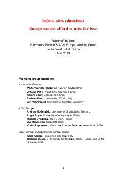 Report of the joint Informatics Europe and ACM Europe Working Group on Informatics education. This report identifies problems and suggest operational recommendations for policy and decision makers. It defines a blueprint for digital literacy and Informatics curricula adapted to the European context and explains why such curricula are critical to the economic health of European countries.