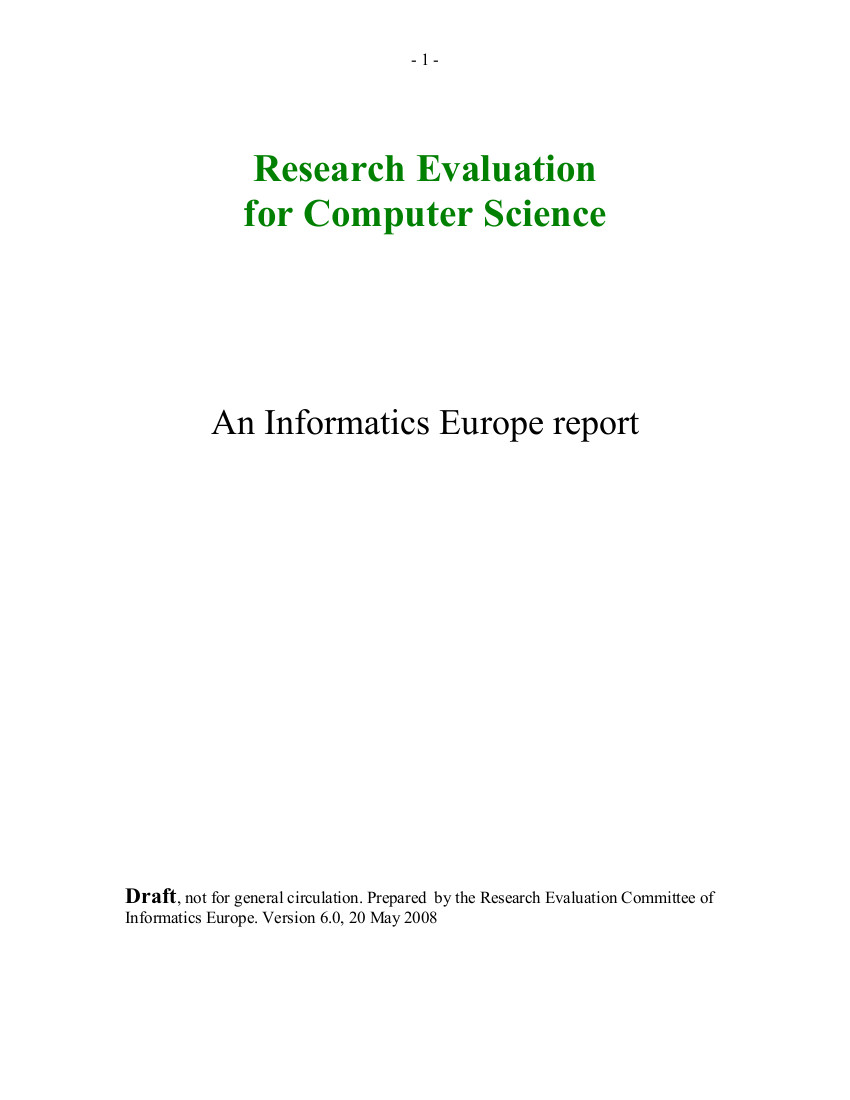 Report published in the Communications of the ACM in 2008 detailing the evaluation of research in computer science. The updated version of the report was published in 2018.