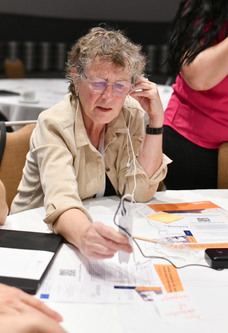 In a co-design session focused on evaluating assistive technology, participants collaboratively engaged in a dynamic hands-on activity to assess various assistive devices. Through guided discussions and interactive demonstrations, the session aimed to identify strengths and areas for improvement in the technology, fostering a user-centered approach to enhance functionality, usability, and accessibility. The session provided workshop participants with hands-on experience of co-design methodologies.