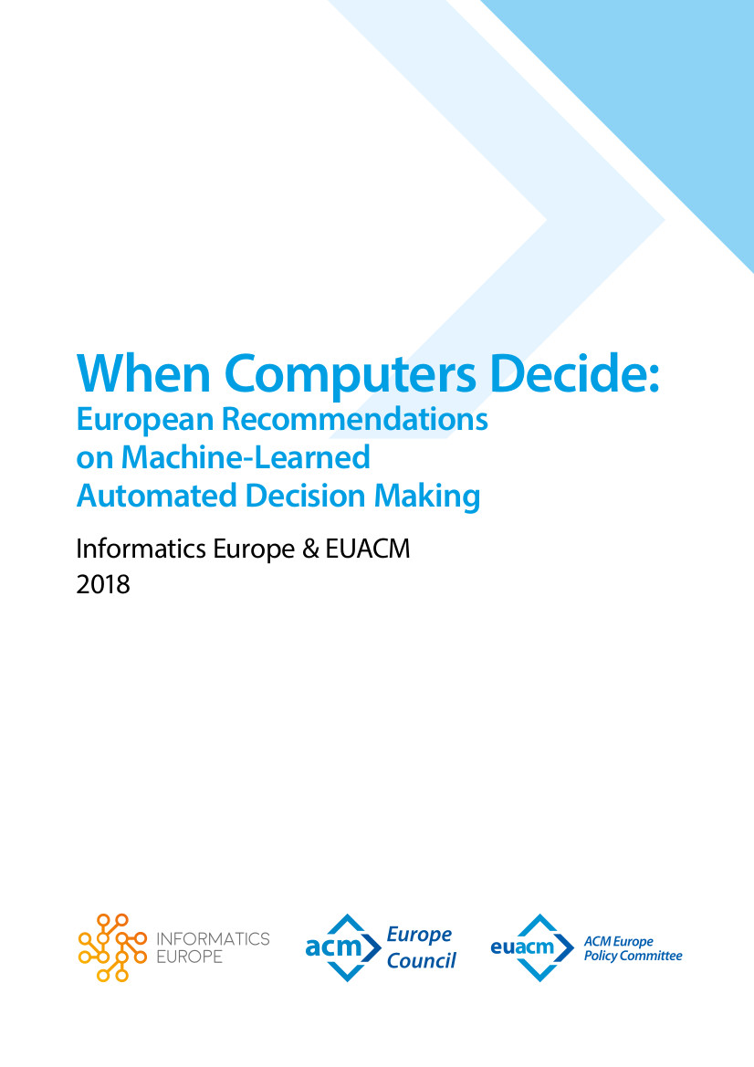 Joint white paper of Informatics Europe Ethics Working Group and ACM Europe on automated decision making (ADM). The white paper reviews the principal implications of the coming widespread adoption of machine-learned automated decision making with a particular emphasis on its technical, ethical, legal, economic, societal and educational ramifications. The authors also give a number of recommendations that policy makers might wish to consider.