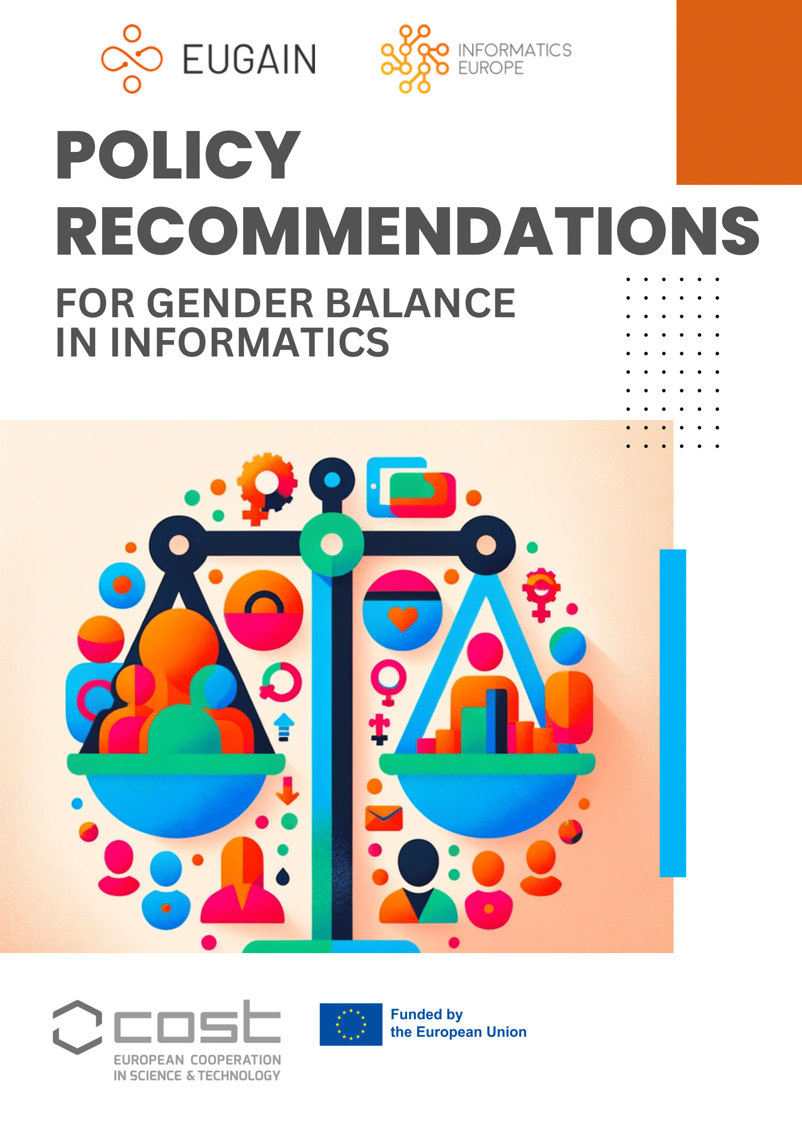 The booklet provides a set of policy recommendations directed to policymakers, at national and European level. It contains concise and practical measures that policymakers can adopt to support gender balance in Informatics. This publication is based upon work from COST Action EUGAIN CA19122 (European Network for Gender Balance in Informatics), supported by COST (European Cooperation in Science and Technology).